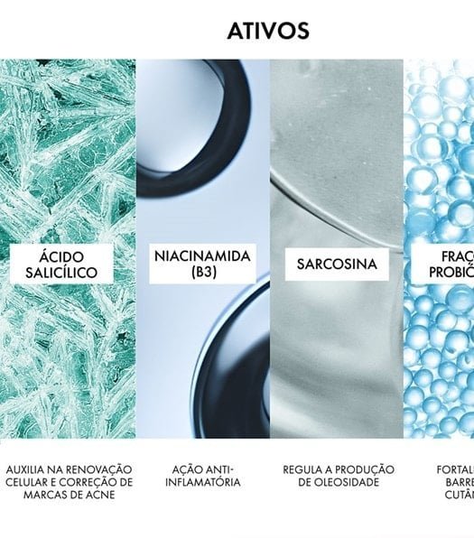 E tem mais! Enriquecido com Niacinamida e Ácido Salicílico, ele também combate os sinais da acne e previne o surgimento de novos danos.